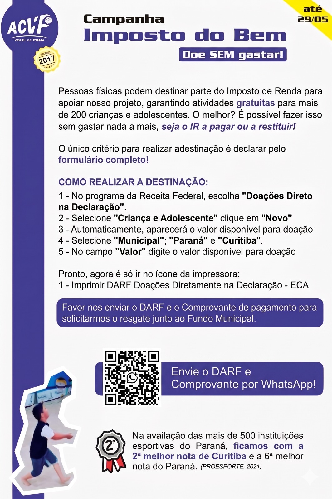 A ACVP é uma entidade que atua, com destaque, no esporte curitibano. Tem sido fundamental como a precursora no desenvolvimento do vôlei de praia em Curitiba!